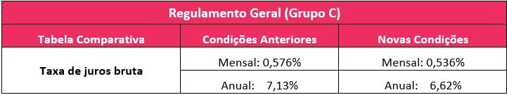 O Plano Regulamento Geral (Grupo C) obteve uma nova redução de juros, tornando o produto ainda mais atrativo aos participantes e beneficiários.