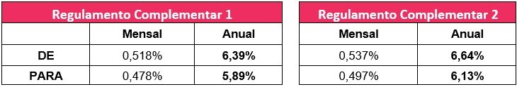 Os Planos Regulamento Complementar 01 e 02 também registraram redução da taxa de juros, conforme demonstrado abaixo: