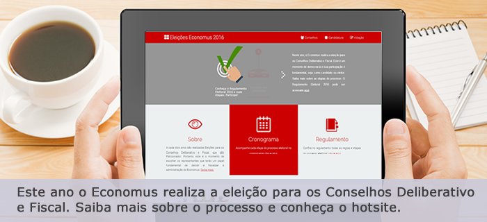 29 jan Institucional, Todas as Notícias Eleições 2016 – Início do Processo Eleitoral para Conselheiros autor Economus 05/02/2019 Neste ano, o Economus realiza eleições para os Conselhos Deliberativo e Fiscal. Este é um momento de democracia e a participação de tod... Ler mais +
