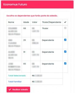 3) Caso tenha dependentes, escolha quais você deseja manter no novo plano. A inclusão de dependentes não é obrigatória. A seguir, clique em “Realizar Adesão”.