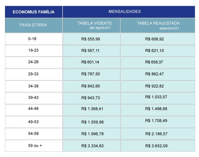 Reajuste do Plano Economus Família