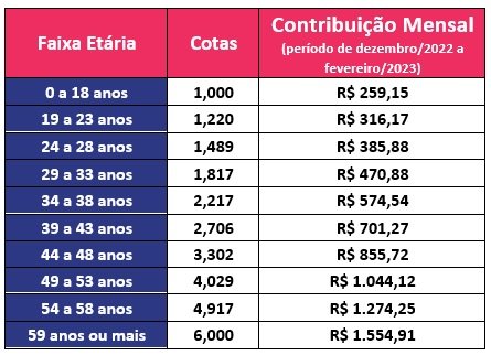 Veja abaixo a nova tabela por faixa etária, com os valores ajustados: